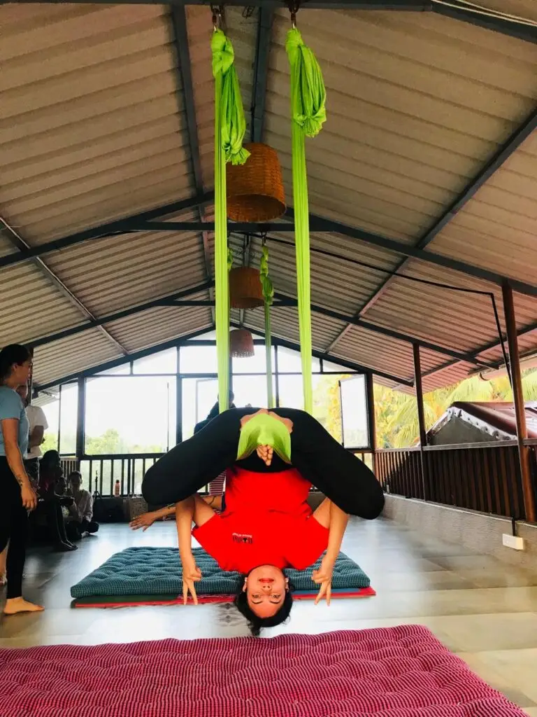 Next, I pursued an Aerial Yoga Teacher Training Course in Mysore at Yoga with Srinatha School. This course deepened my understanding of alignment and inspired me to help students reconnect with their inner child — bringing joy, playfulness, and freedom into their practice.